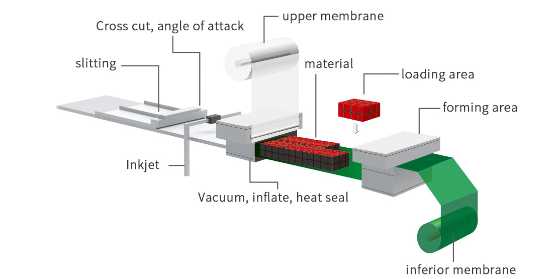 This equipment is a new generation of packaging equipment independently developed by the company's R&D team and after years of testing and improvement, it has become the most stable and usable automatic packaging equipment. The machine can automatically form, heat seal and cut, and can be equipped with automatic coding or automatic coding system to truly realize automatic vacuum packaging.