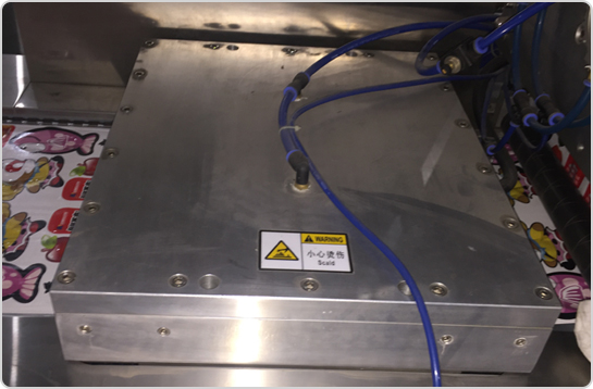 4、設(shè)備中部(封口和真空區(qū)域) 由封口模具和上加熱模具,設(shè)備通過(guò)步進(jìn)到達(dá)封口真空區(qū)域,下膜模具通過(guò)氣缸上升、壓緊上加熱模具,再通過(guò)真空管路進(jìn)行抽真空,最后完成封口。 |
